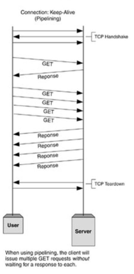 하지만 이 방식은 네트워크 지연을 발생시켰습니다. 이 문제를 해결하기 위해 Pipelining이 추가 되었습니다.