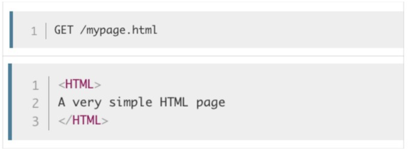 요청은 단일 라인으로 구성되며 리소스에 대한 메소드는 GET만 존재합니다.
