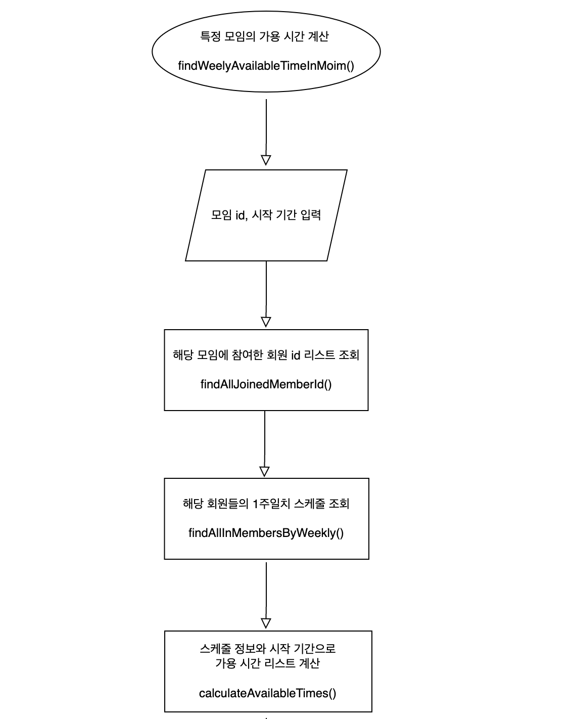AvaliableTime.calculateAvailableTimes() 메소드를 기준으로 도메인에서의 플로우 차트는 다음과 같습니다.