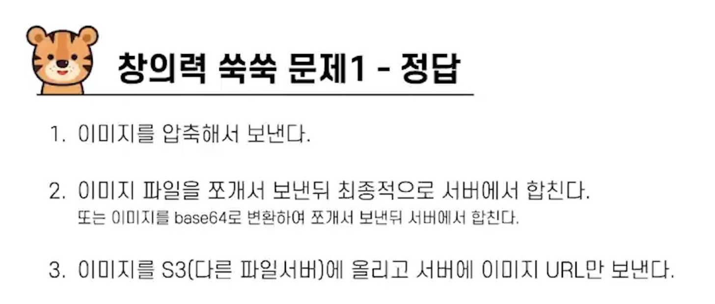 다음으로 생각해볼 수 있는 것을 클라이언트 쪽에서 이미지를 분할하여 전송하고 서버에서 합치는 방법이 있습니다.