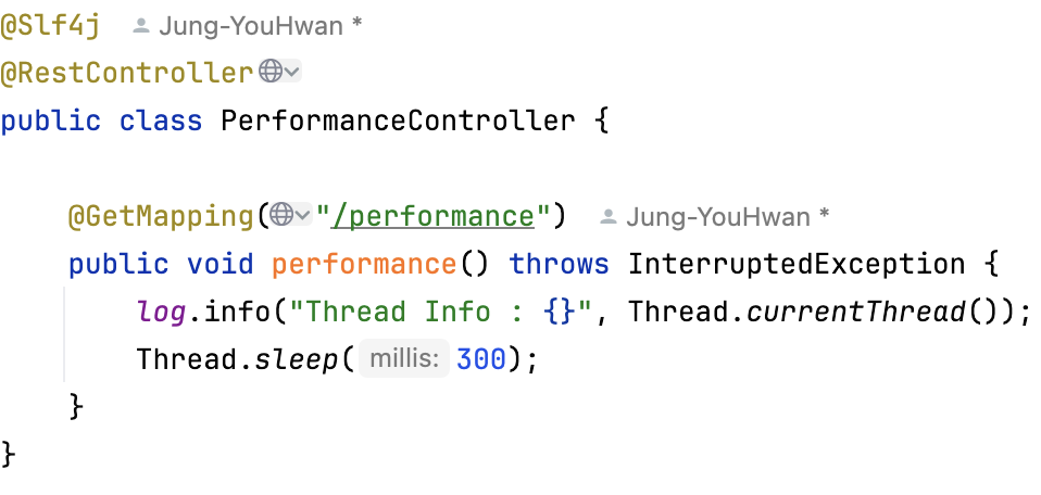 쓰레드 정보를 출력하고 0.3초 sleep 하도록 하여 각각의 방식이 얼마만큼 처리할 수 있는지 확인해 보겠습니다.