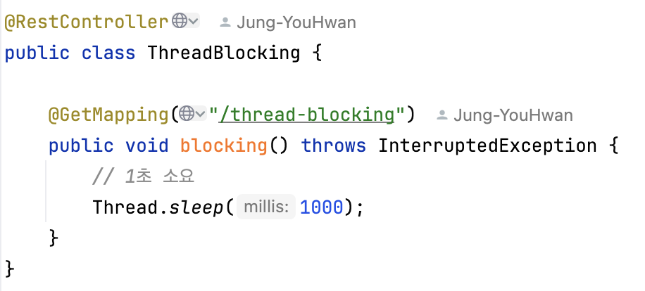 즉, 쓰레드가 작업을 실행하는 DB I/O나 네트워크 I/O 가 발생하게 되면 쓰레드는 Blocking 됩니다.