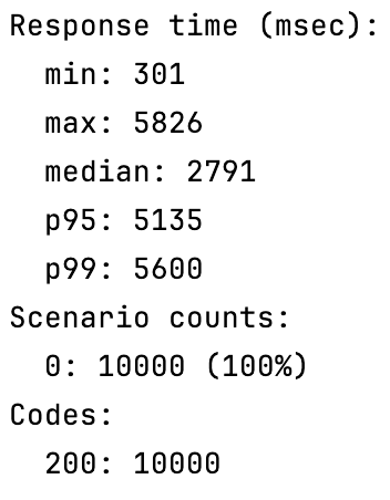 마찬가지로 해당 API를 1초에 1000번씩 10초동안 총 10000번을 호출해보겠습니다.