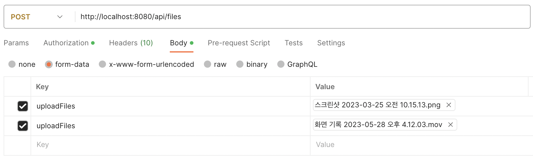 첫번째는 이미지 두번째는 동영상을 업로드하는 예시를 postman으로 확인해보겠습니다.