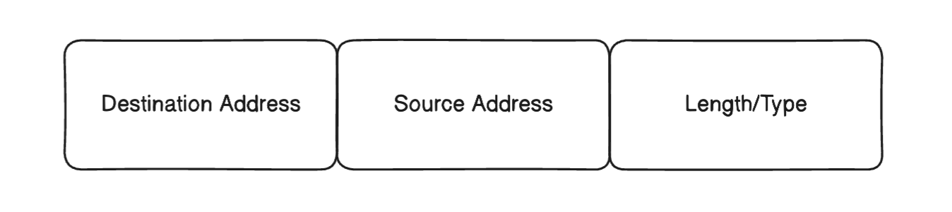 이더넷 헤더는 위 그림과 같은데 Destination Address와 Source Address는 각각 수신처의 MAC 주소 + 송신처의 MAC 주소를