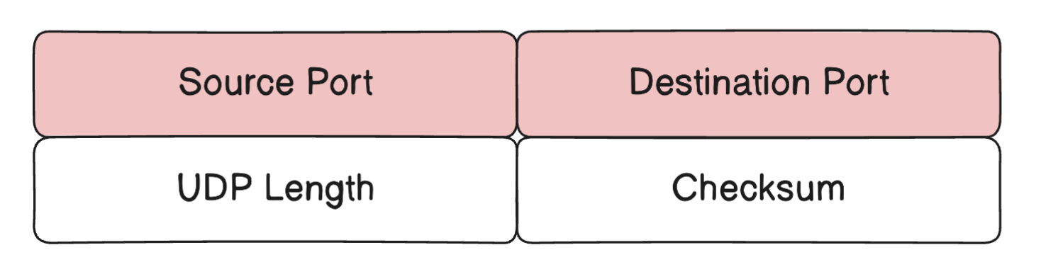 16비트로 구성된 Source Port, Destination Port가 있습니다.