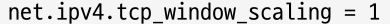 다음 명령어를 통해 커널 파라미터를 확인할 수 있습니다. 값이 1로 설정되어 있다면 window scaling이 활성화된 것이고