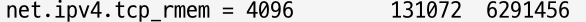 아래의 net.ipv4.tcp의 설정은 TCP 소켓에만 특정하여 할당되는 값입니다. min, default, max를 나타냅니다.