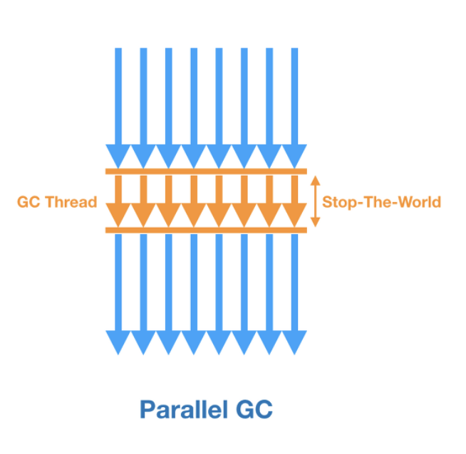 Paralle GC는 여러 개의 쓰레드로 GC를 실행합니다. Serial GC보다 Stop-The-World 시간이 훨씬 더 짧으며